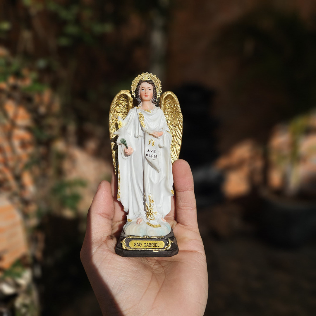 – 1 Estátua Decorativa Santo Católico Arcanjo Gabriel 08,5cm Resina