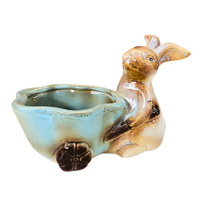 Com acabamento esmaltado na cor azul e detalhe de cesta integrada ao design, o coelho agrega charme e sofisticação à decoração. Pode ser utilizado como item ornamental ou como suporte para pequenos objetos decorativos.