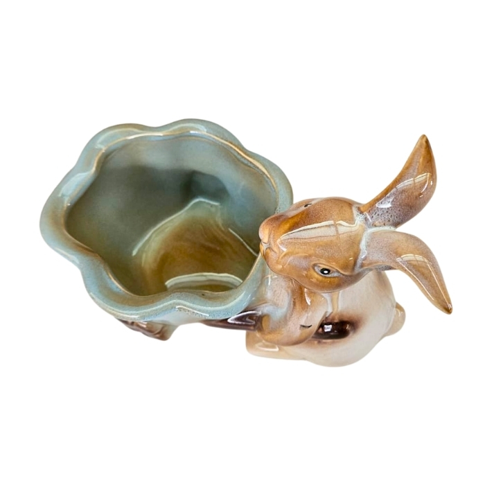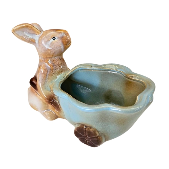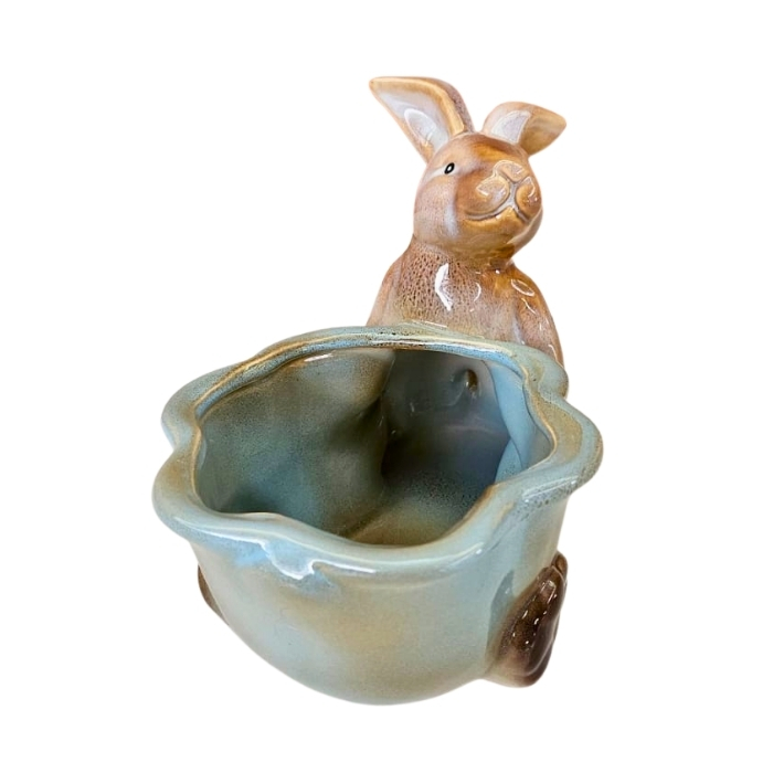 O Coelho Azul com Cesta em Porcelana é uma peça decorativa elegante e temática, ideal para compor ambientes delicados e decorações sazonais.