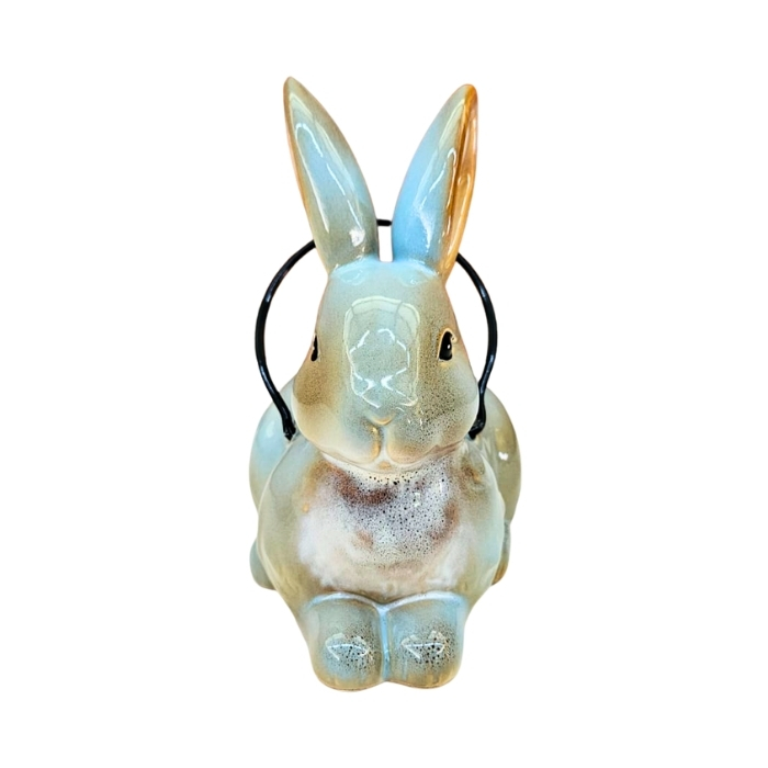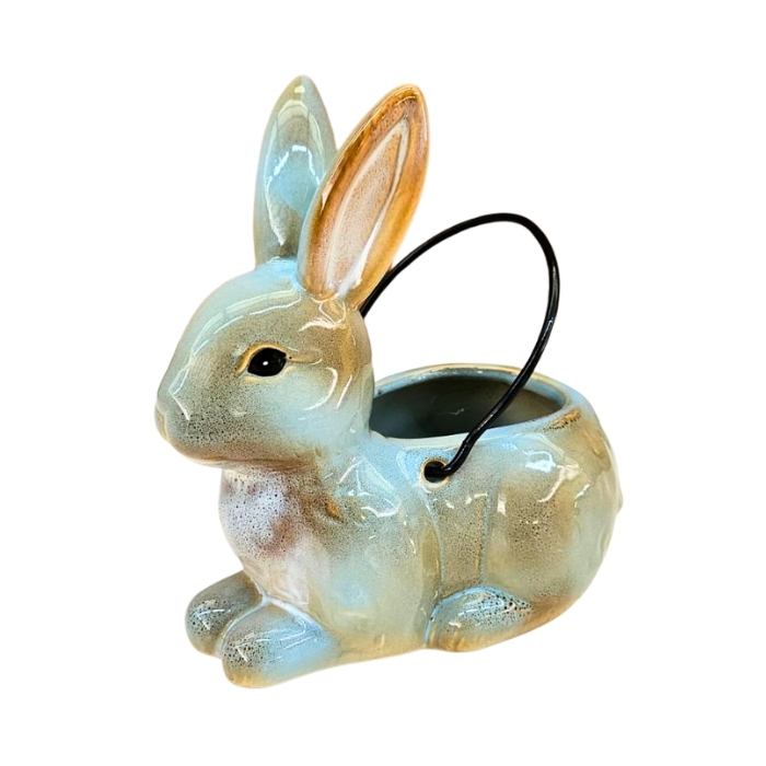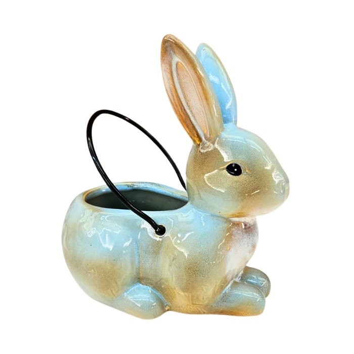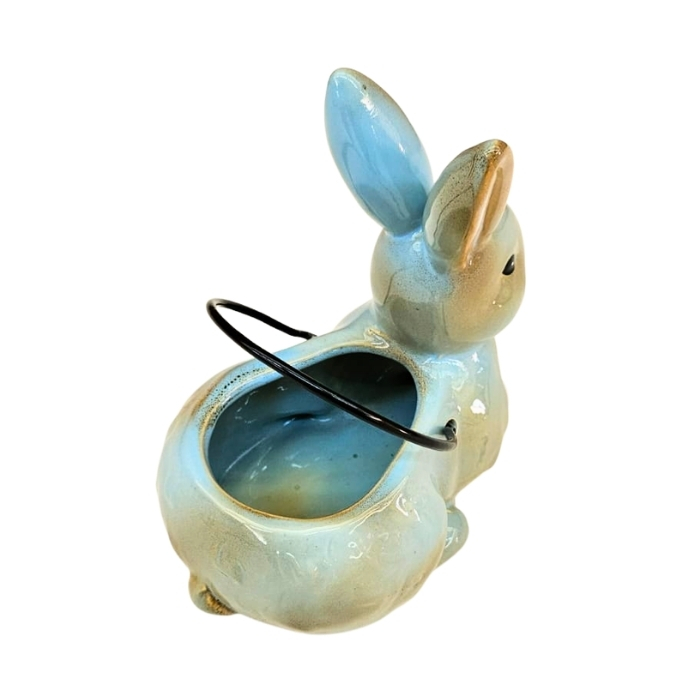 Coelho Cachepot em Porcelana Azul com Alça 18cm Decorativo