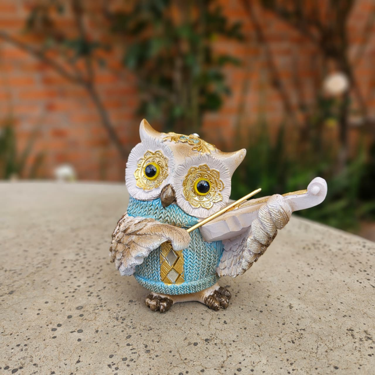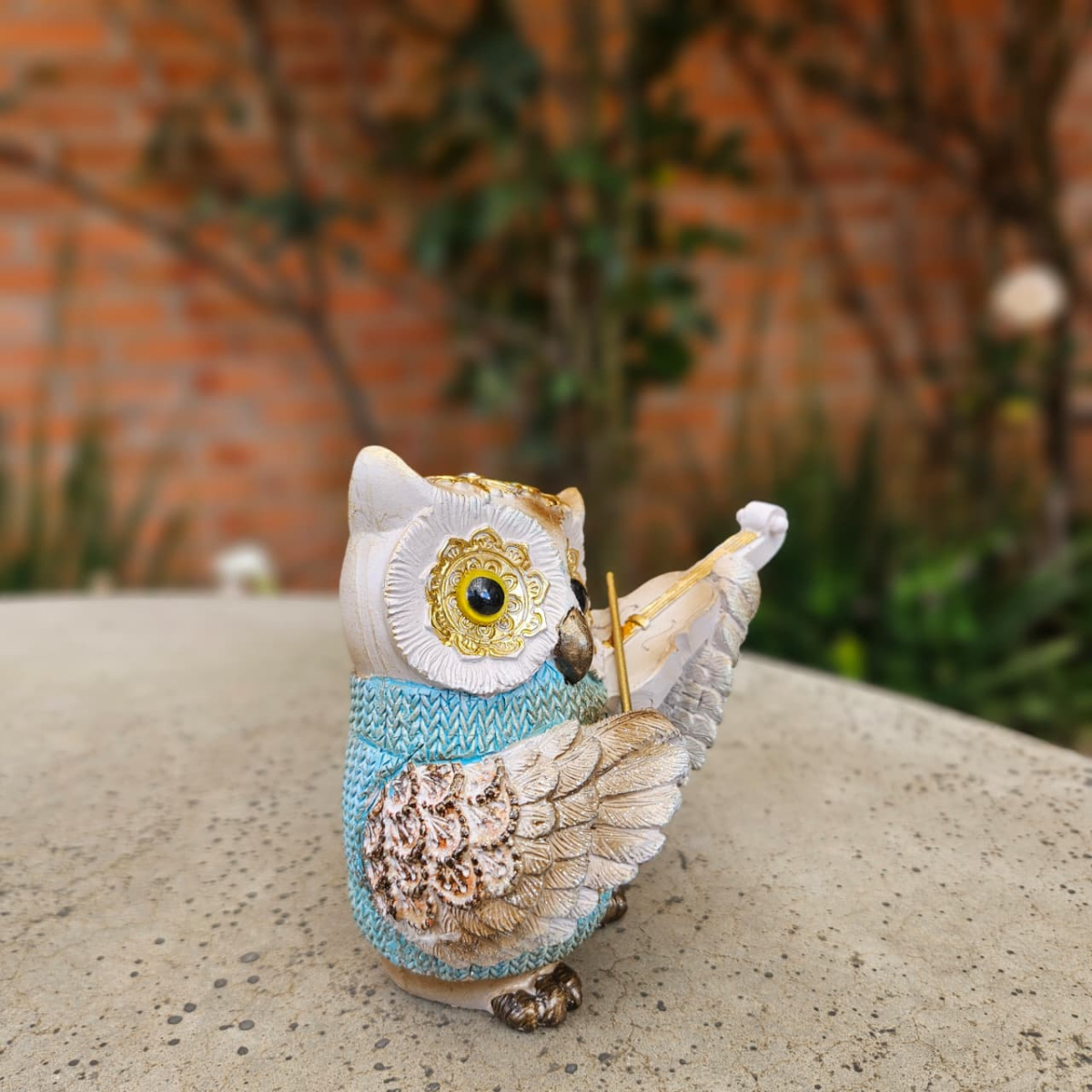 Marca: Trilunna Coruja com violão em resina 10x9cm