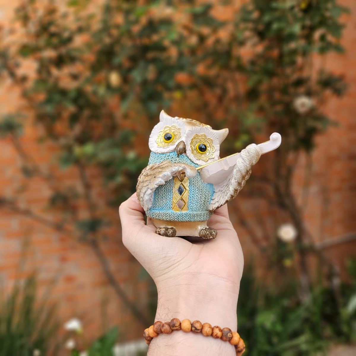 Coruja Azul Com Violino 10Cm