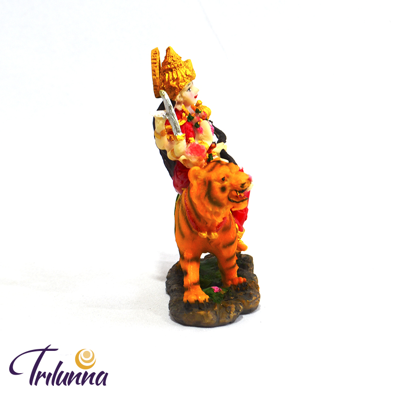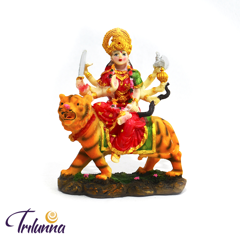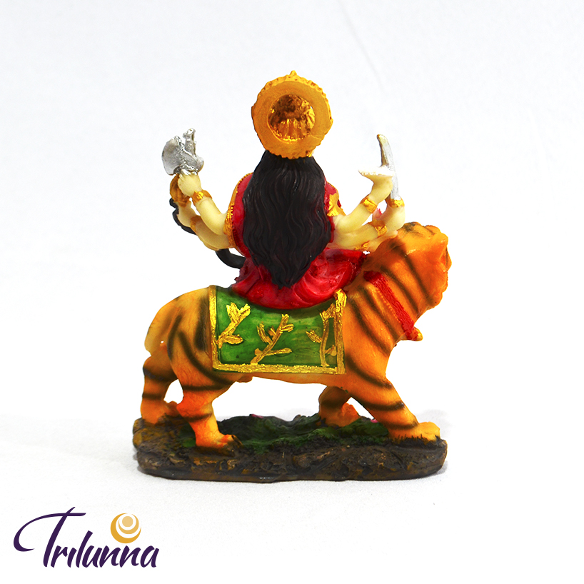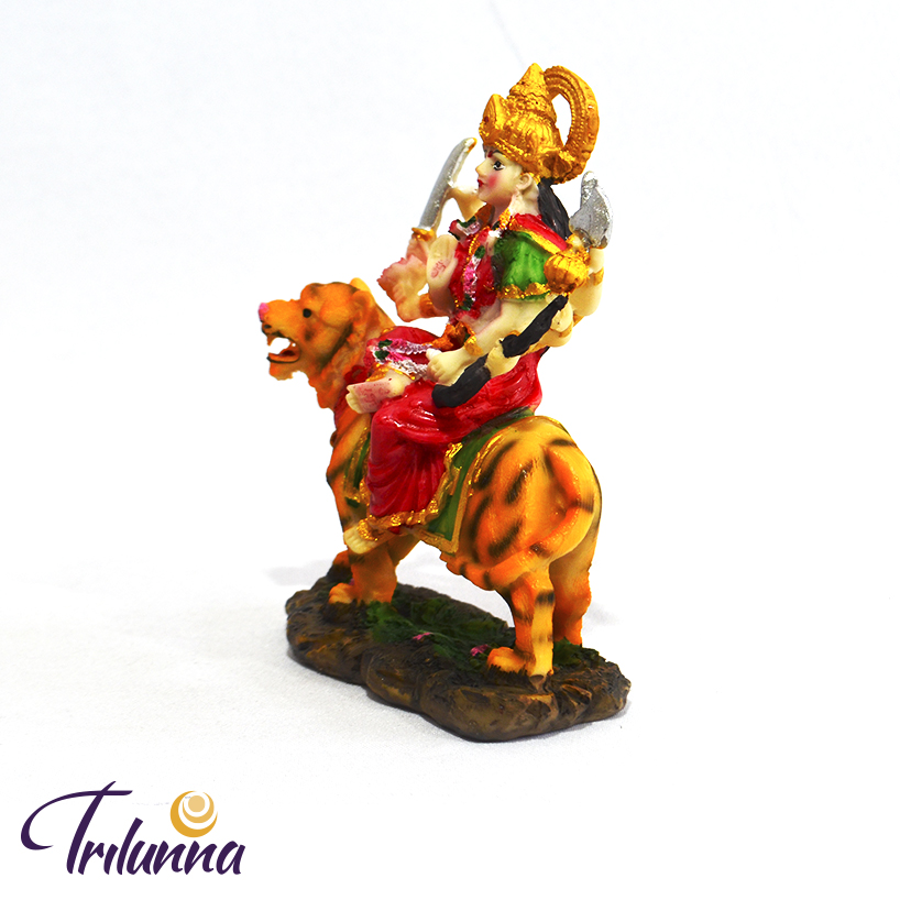 Serena, como mãe, com a sua fonte irradiante de força e energia aberta, emanando força que protege. Afinal: tudo tem de voltar para onde veio. Durga vence as guerras, contra os piores demônios, montada em seu tigre, ostentando sua confiança em seu próprio eu. Durga é muito popular entre os hindus, simboliza a Divina Mãe, e é um dos pilares principais de sustentação da fé hinduísta.
