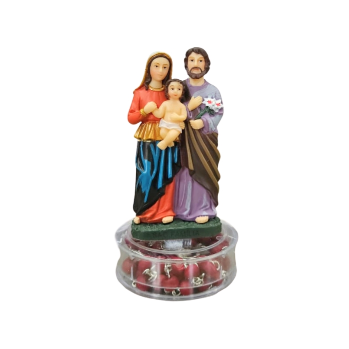 Estátua Decorativa Católica Sagrada Familia C/ Terço 10cm
