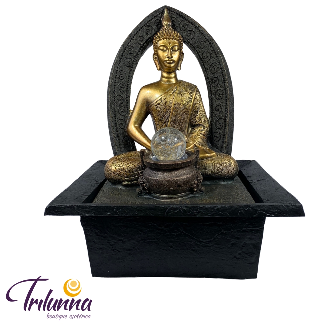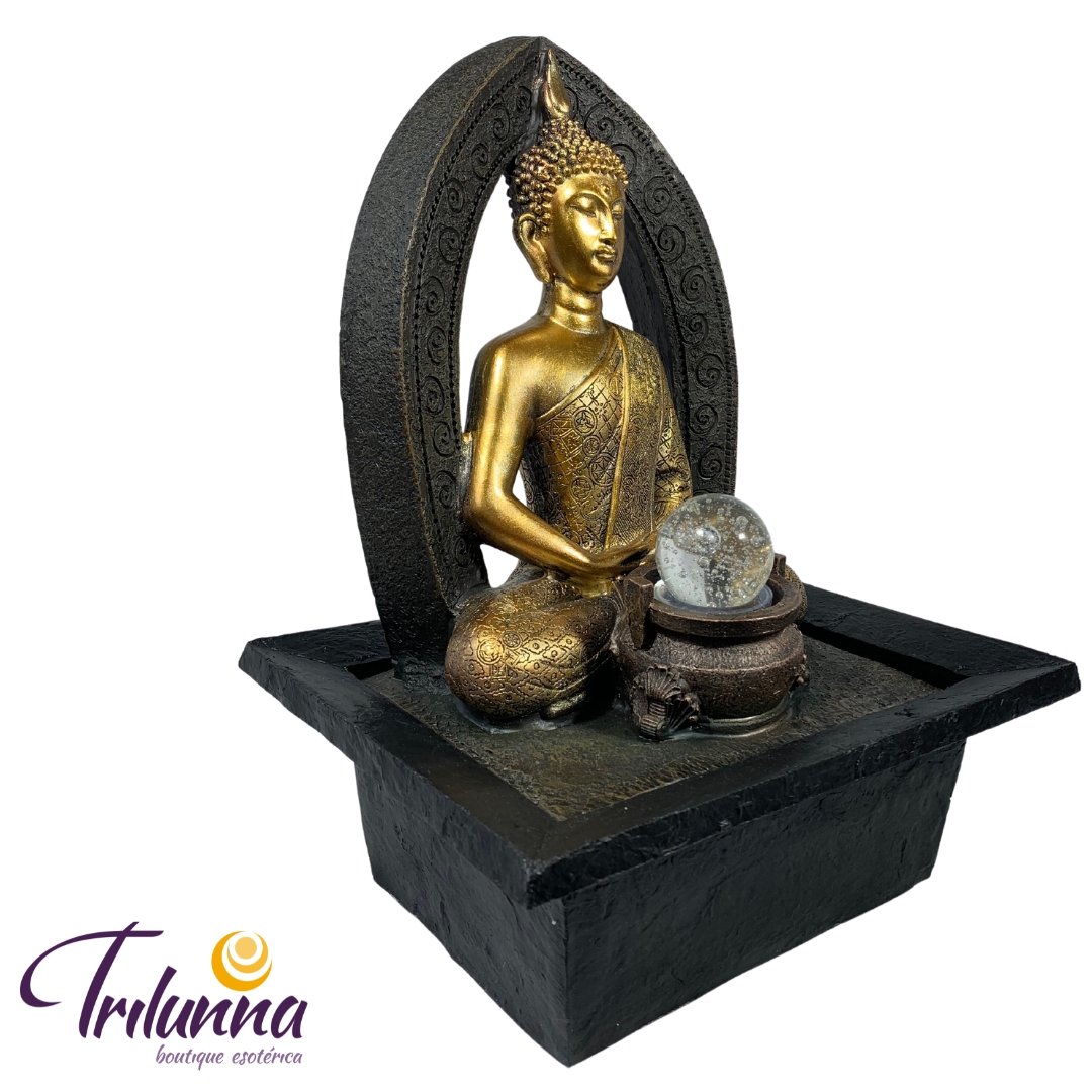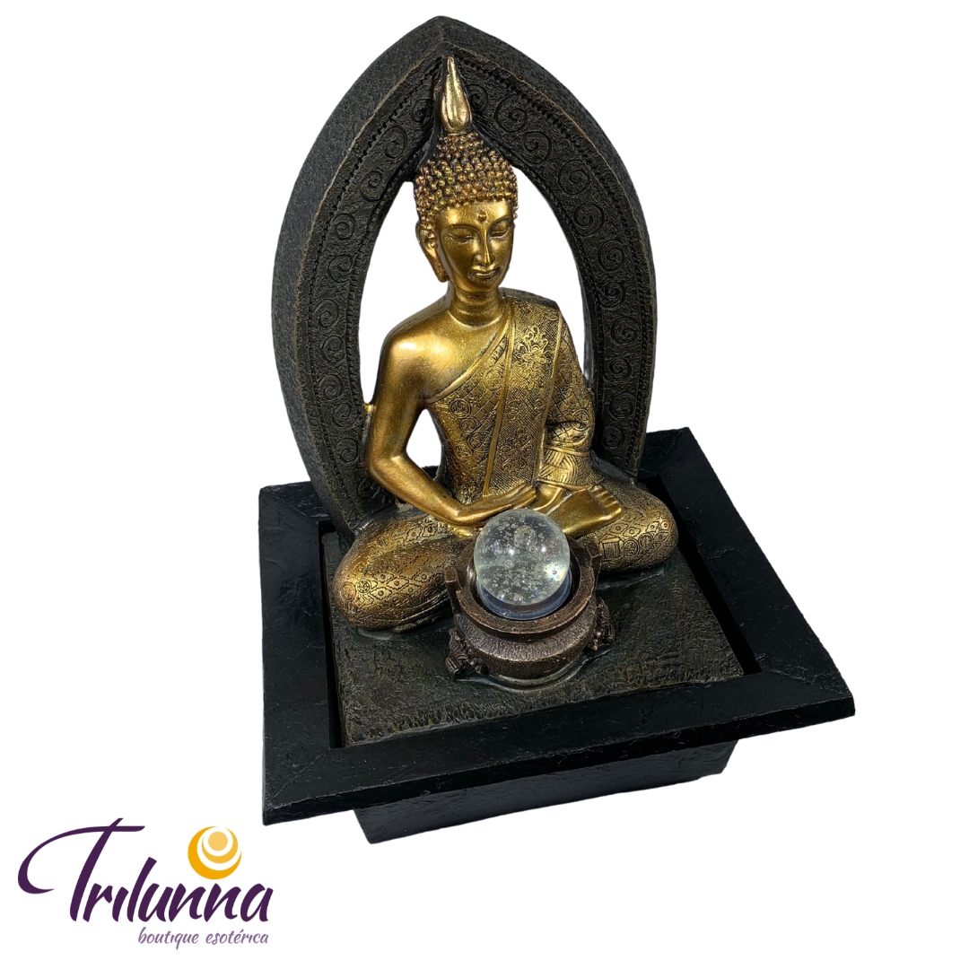 Fonte Decorativa Buda Dourado C/Bola – 40Cm