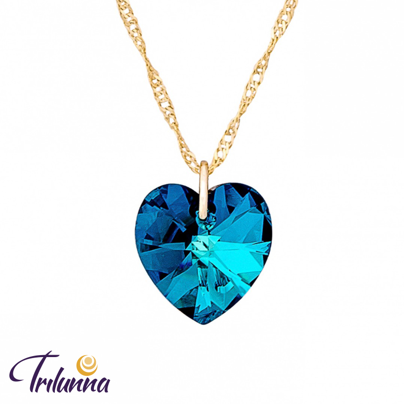 Gargantilha Coração Bermuda Blue 15mm Dourada