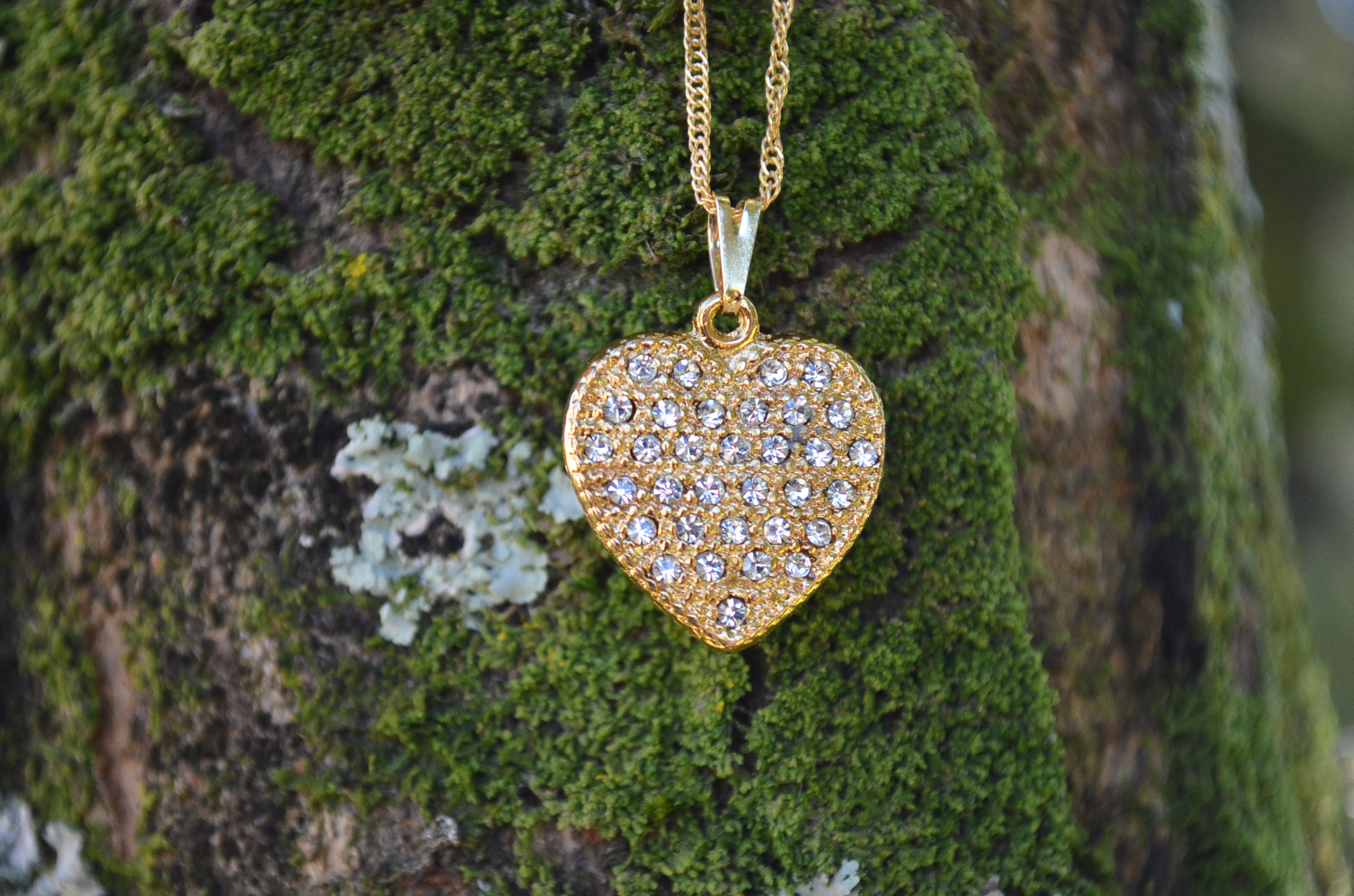 Gargantilha Coração Strass 20mm Dourada