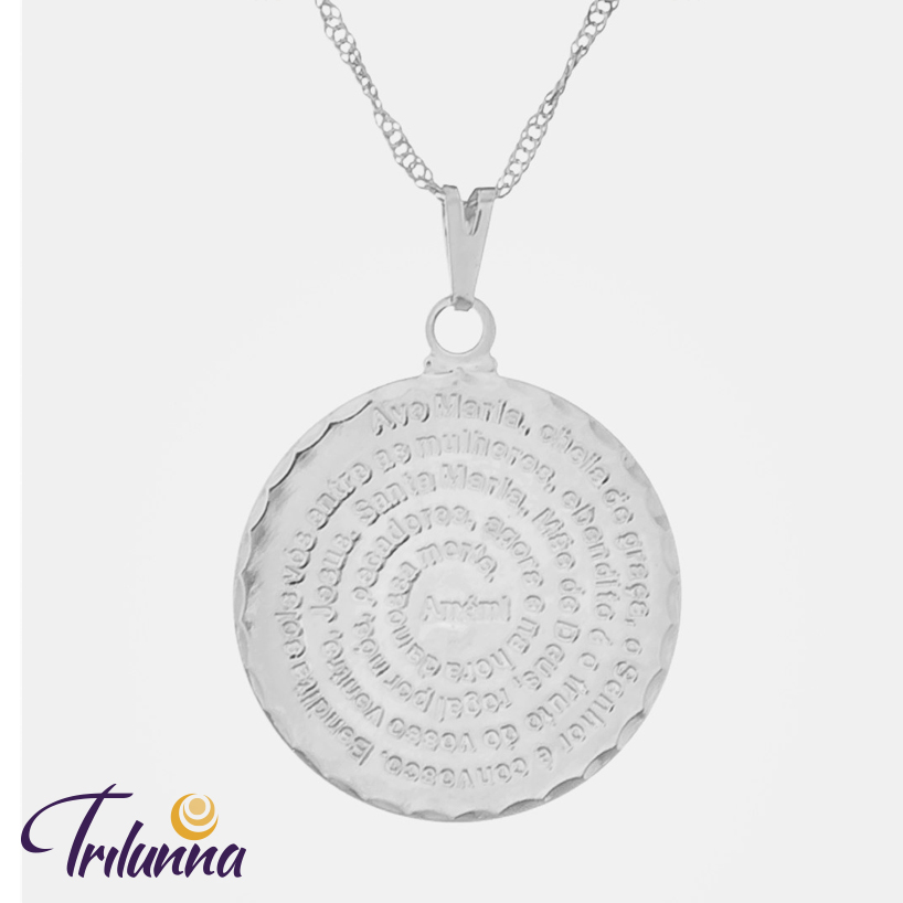 Gargantilha Medalha Ave Maria 25mm Prata