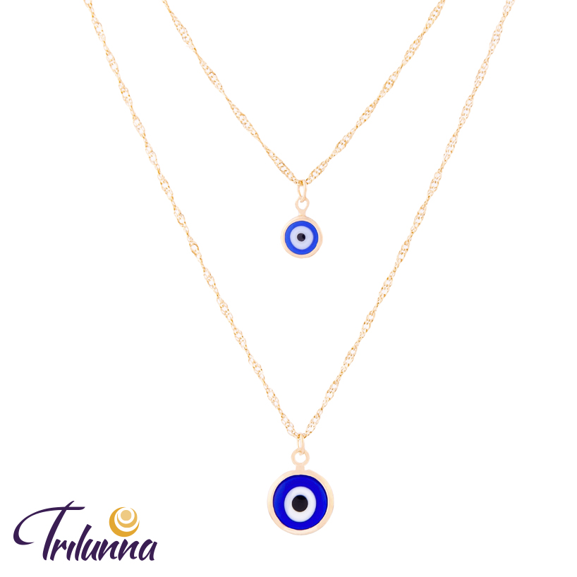 Gargantilha Olho Grego Dupla 10mm Dourada