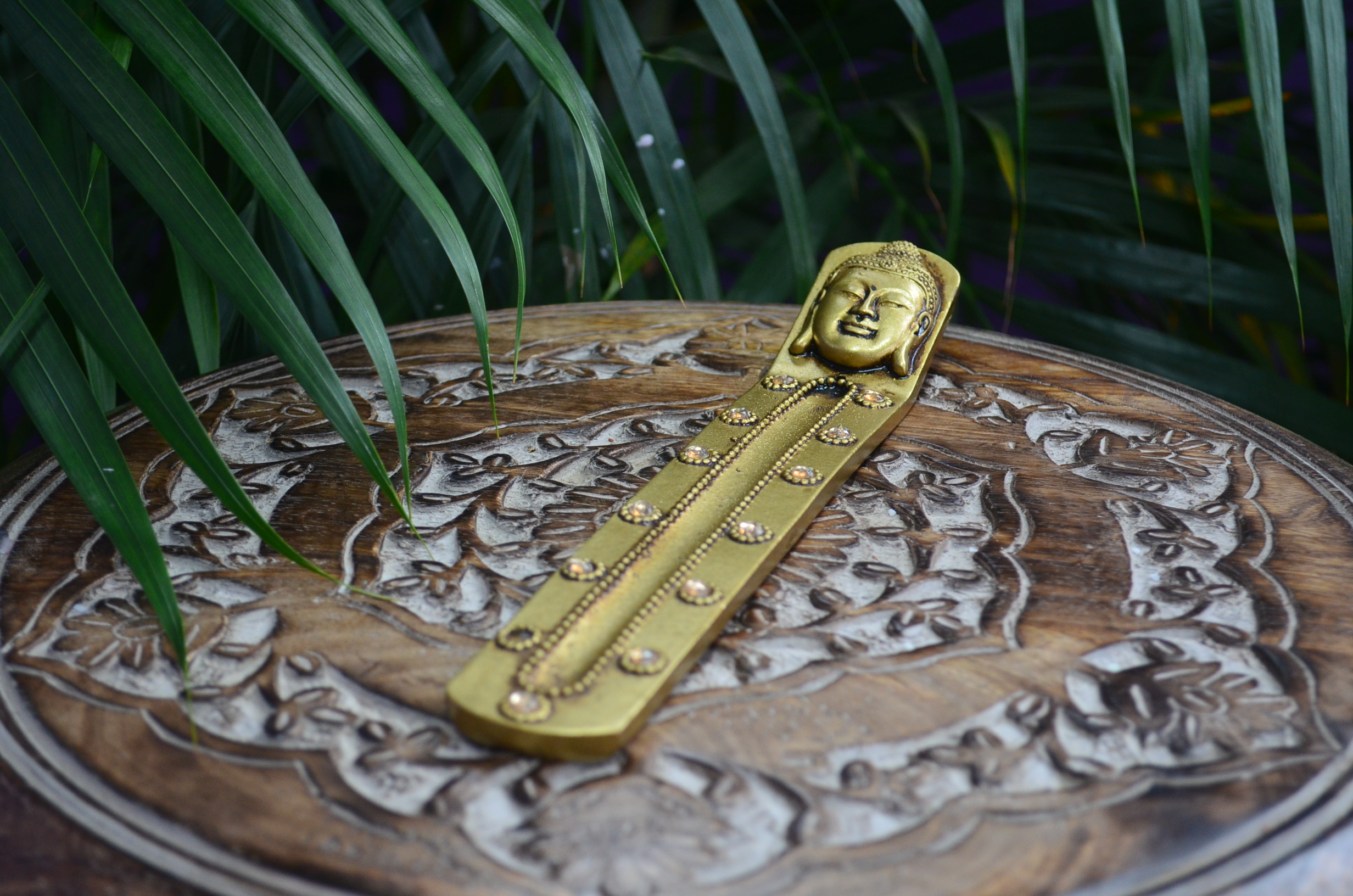 Incensário Régua Buda Tibetano Dourado Canaleta Strass