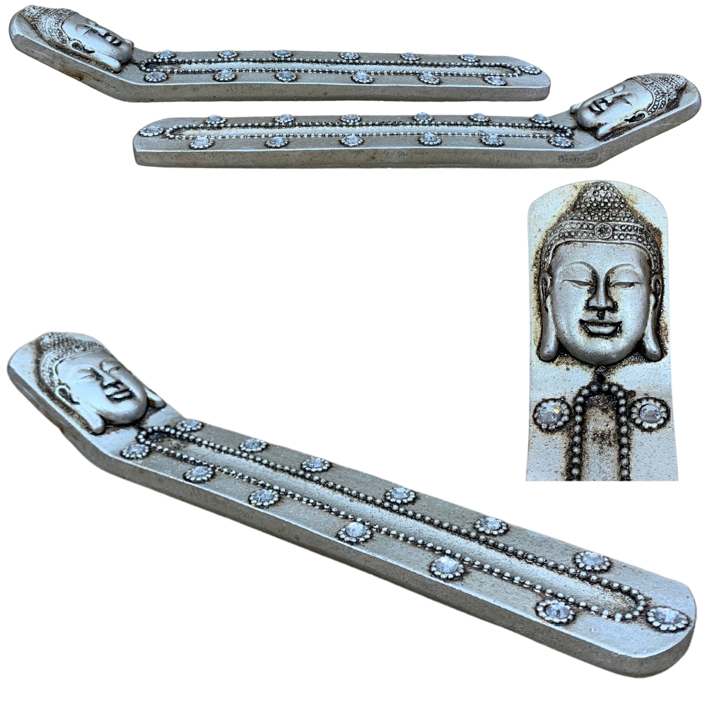 Incensário Régua Buda Tibetano Prata Canaleta