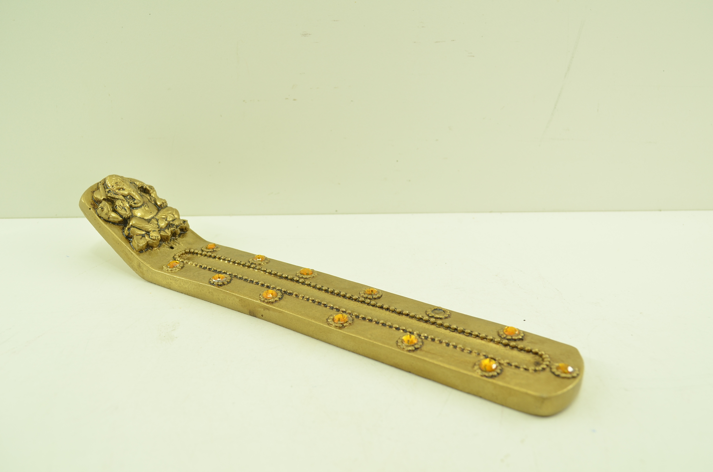 Incensário Régua Ganesha Dourado Canaleta Strass
