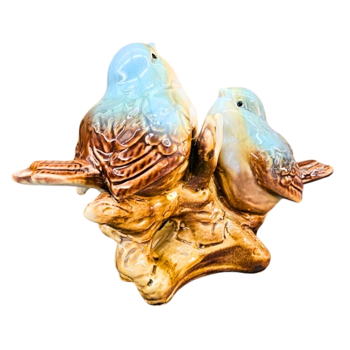 Pássaros Decorativos em Porcelana Azul com Base Floral 16cm