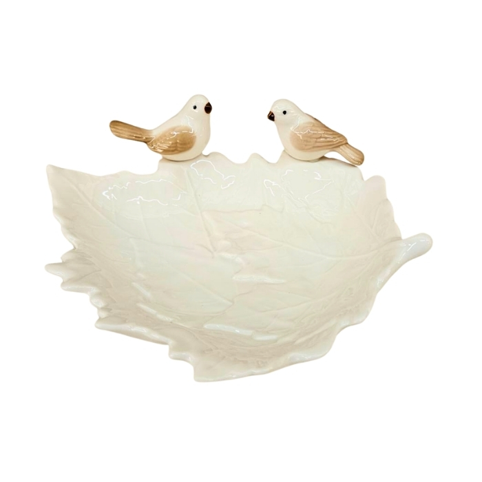 Petisqueira em Porcelana Branca com Pássaros 22cm Decorativa