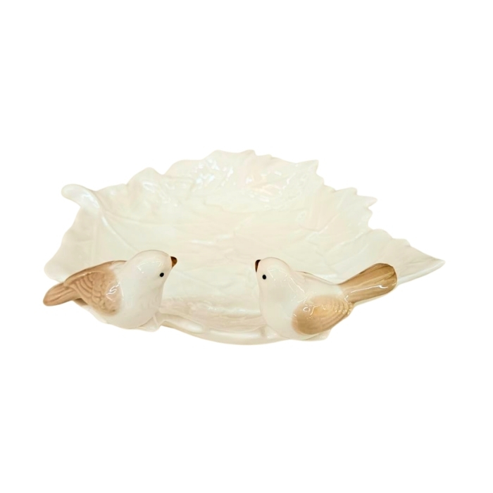A Petisqueira em Porcelana Branca com Pássaros é uma peça elegante e delicada, ideal para servir petiscos, aperitivos, doces e frios com sofisticação.